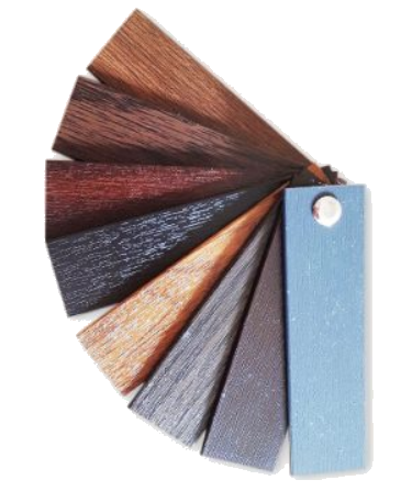Listwy PCV występują również w kolorach tzn. listwy takie okleinuje się drewnopodobnymi foliami. Najbardziej popularne folie na polskim rynku produkowane są przez firmy: Renolit, Hornschuch, Cova, LG. Te same folie którymi okleinuje się profile okienne używane są do okleinowania listew PCV oraz szprosów PCV.