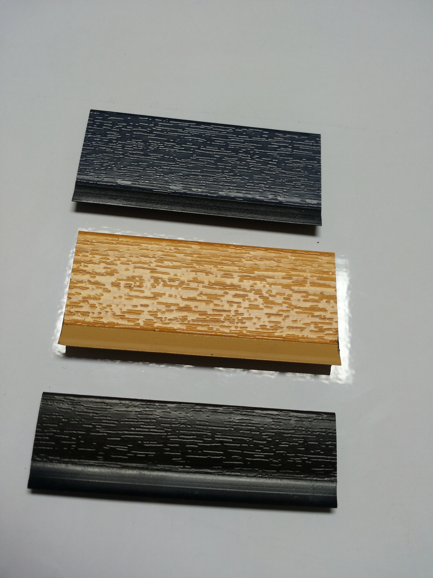 Produkuje się również płaskie listwy kolorowe z uszczelką, gdzie kolor uszczelki dopasowany jest do koloru folii Renolit, Hornschuch z tym, że takie listwy produkuje się w sztangach 5m. Listwy plastikowe produkuje się z taśmą samoprzylepną jak również bez taśmy samoprzylepnej. Zarówno listwy białe z pcv jak też dekoracyjne listwy okleinowane stanowią element estetyczny, wykończeniowy okna.