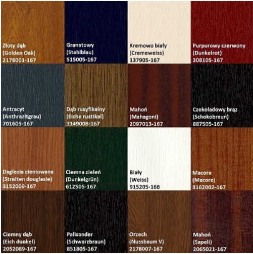 Przykładowe kolory folii Renolit