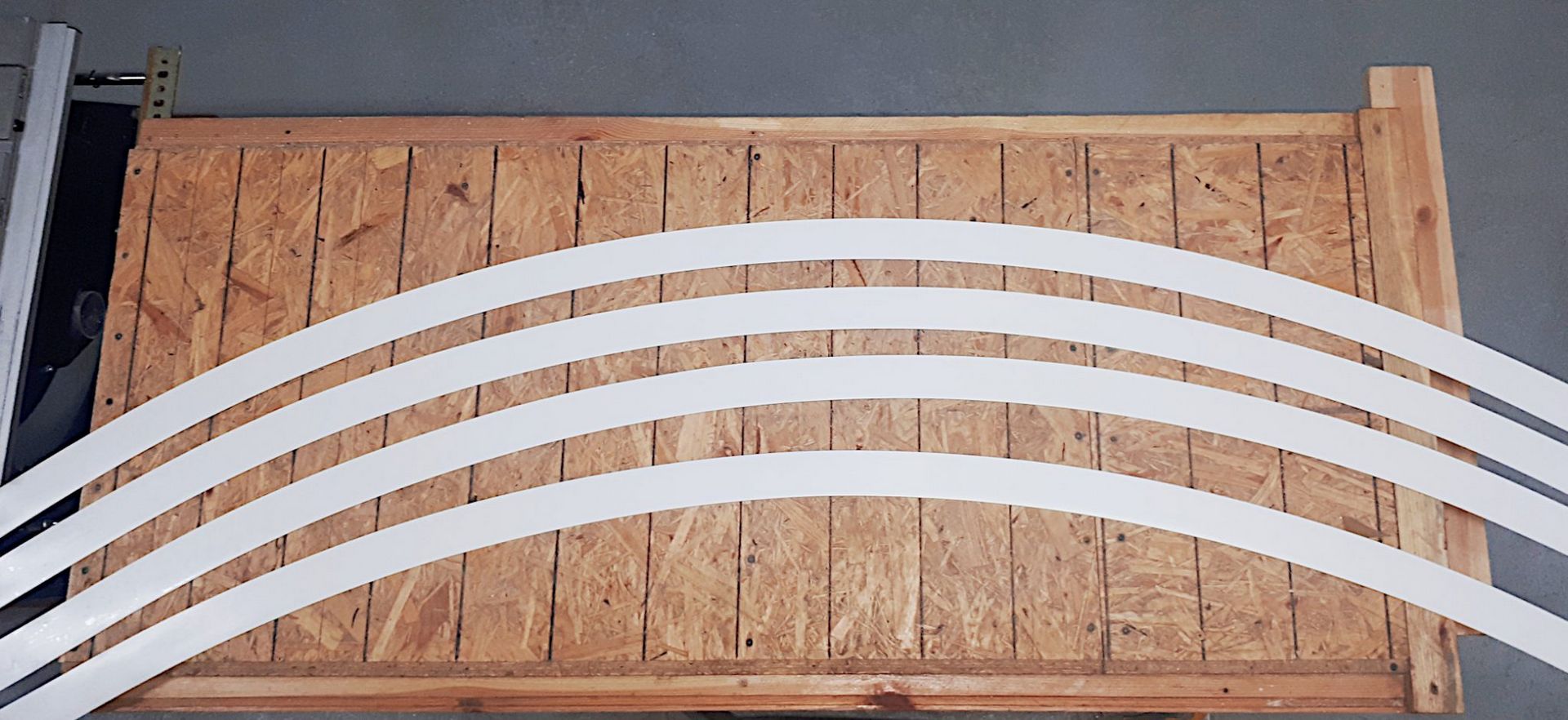 Do gięcia używa się listew pcv w kolorze białym jak również listew pcv okleinowanych foliami Renolit, Hornschuch, Cova, LG.