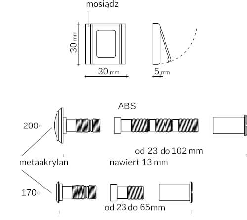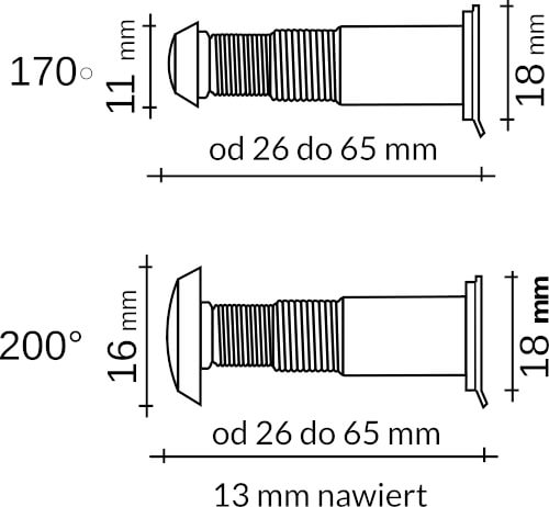 Gwarantuje dobrą i panoramiczną widoczność .Od strony wewnętrznej posiada praktyczną i dekoracyjną przesłonkę. Kolor wizjera: czarny, osłonki w 3 kolorach – chrom, złoty i stary brąz.