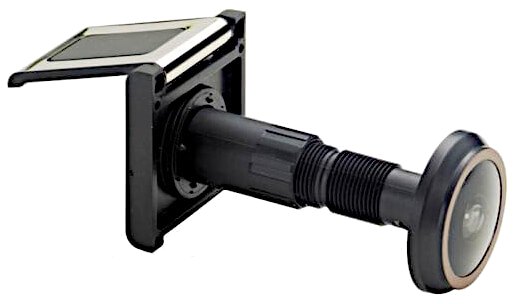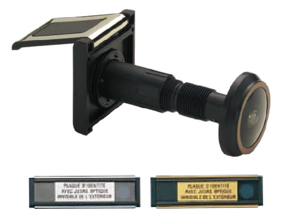 Na zewnątrz wizjer niewidoczny, zintegrowany z wizytówką. Gwarantuje dobrą i panoramiczną widoczność. Od strony wewnętrznej posiada praktyczną i dekoracyjną przesłonkę. Kolory: czarno-srebrny, czarno-złoty.