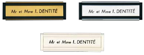 Wizytówka Lir (szyld na wizytówkę). Montaż na śruby lub taśmę samoprzylepną (w komplecie). Kolor: czarno-srebrny, czarno-złoty, biały. Przykładowe zastosowanie: do drzwi, mebli, szaf, regałów w biurach, hotelach, firmach.